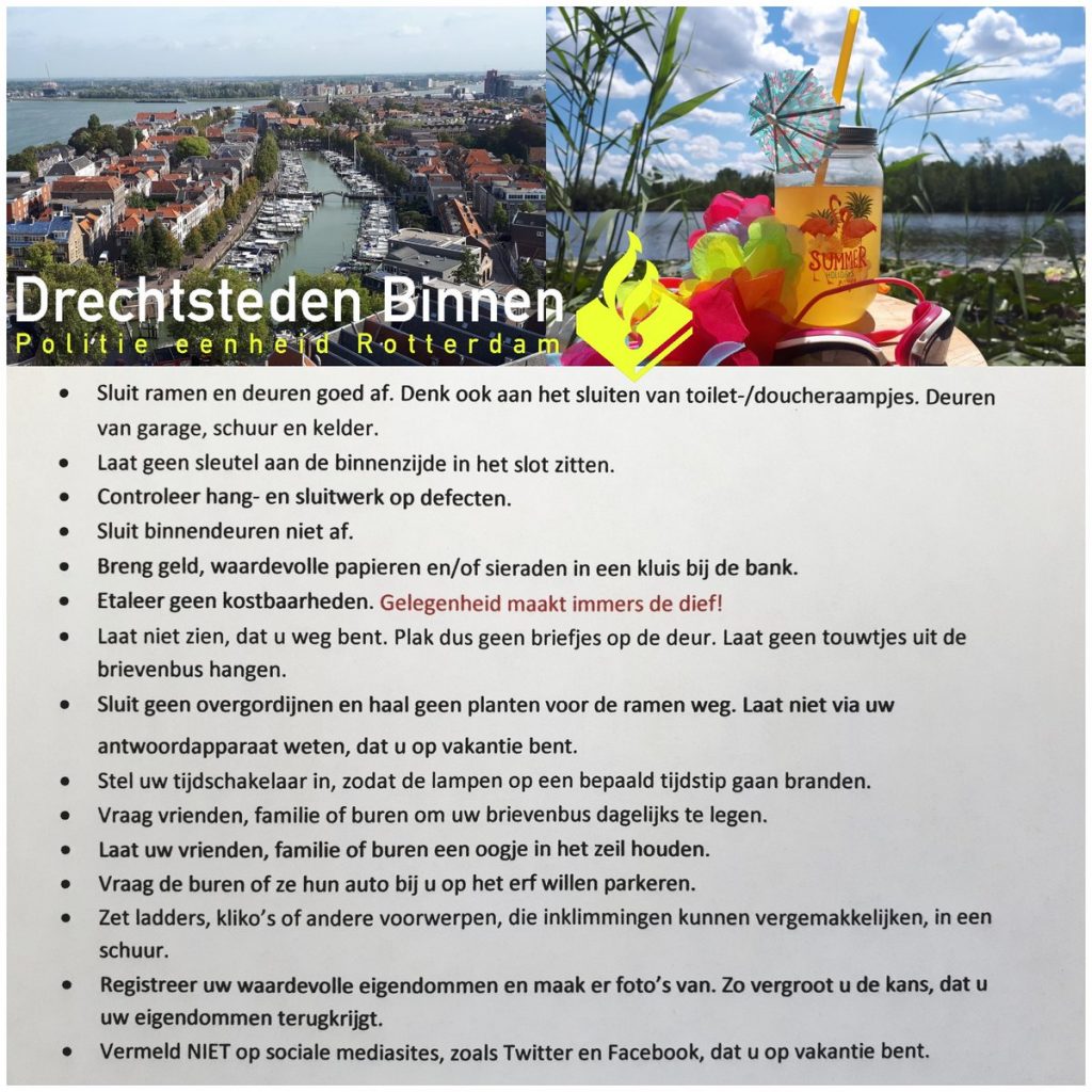Met de zomervakantie voor de deur heeft de politie een aantal tips gedeeld om de kans op inbraak te verminderen. Tijdens de donkere dagen en tijdens vakanties is er een stijging van het aantal woninginbraken.